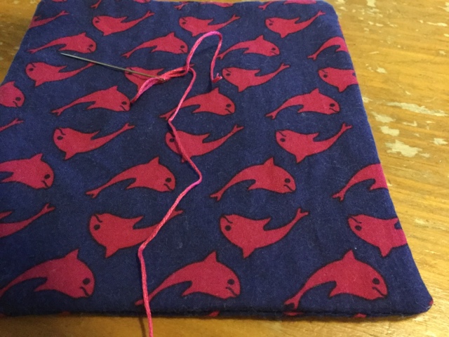 Repeat until you have a series of horizontal and vertical rows. This keeps the batting in place.