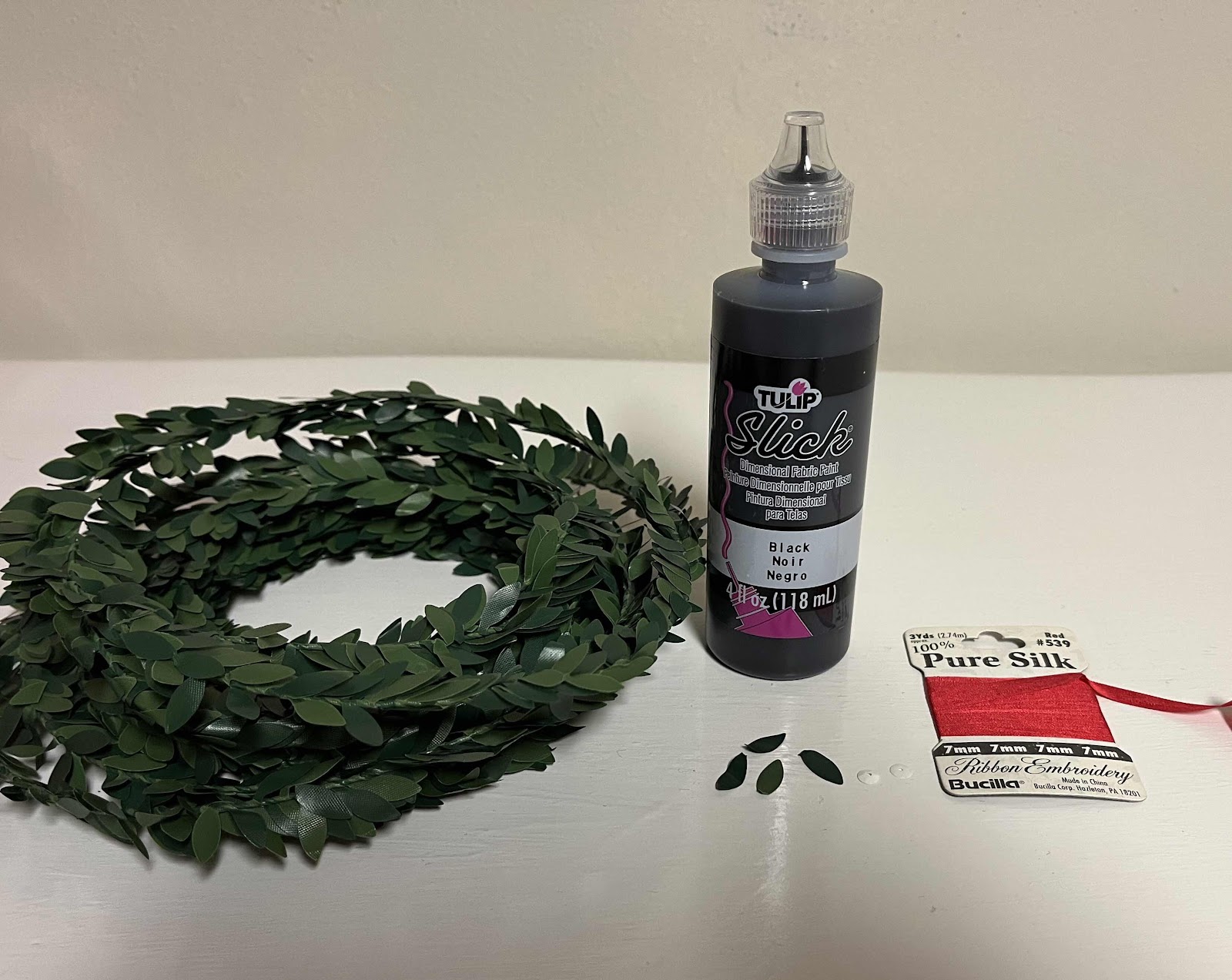 Wrap garland around two fingers, on second round twist around the circle, trim excess